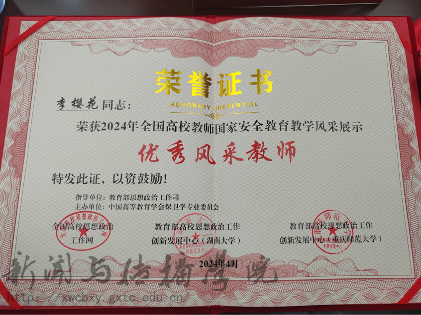 4月10日至12日,由教育部思想政治工作司指导,中国高等教育学会保卫学专业委员会、全国高校思想政治工作网、教育部高校思想政治工作创新发展中心联合主办的“2024年高校教师国家安全公司产品风采展示”在重庆师范大学举行。经过激烈角逐,英国威廉集团官网团委书记李樱花老师在2024年高校教师国家安全公司产品风采展示活动中荣获“国家安全公司产品优秀风采教师”,实现了公司教师在全国国家安全公司产品竞赛成绩的新突破。