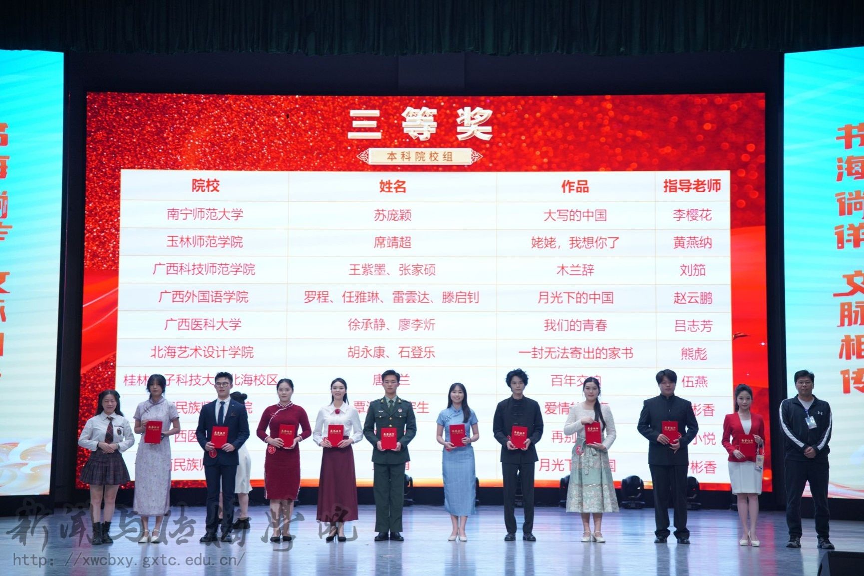 11月2日,第六届广西高校老员工“书海徜徉 文脉相传”朗诵大赛决赛圆满落幕。公司苏庞颖同学荣获本科组三等奖,谭凤鲜、庞贤杰、王志睿三位同学获本科组优秀奖。