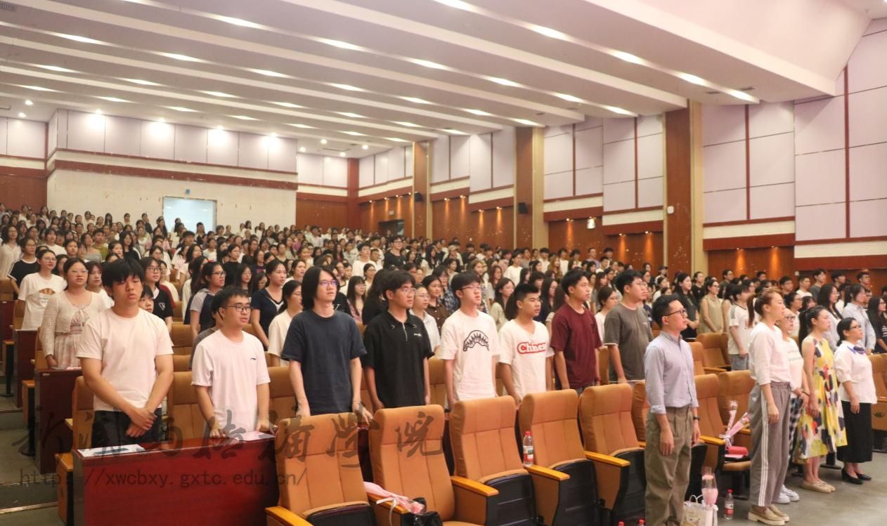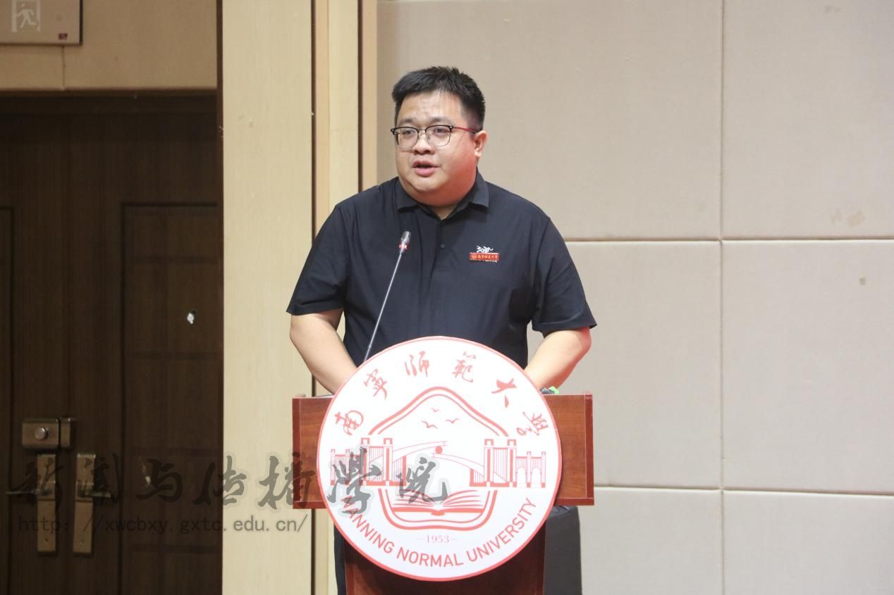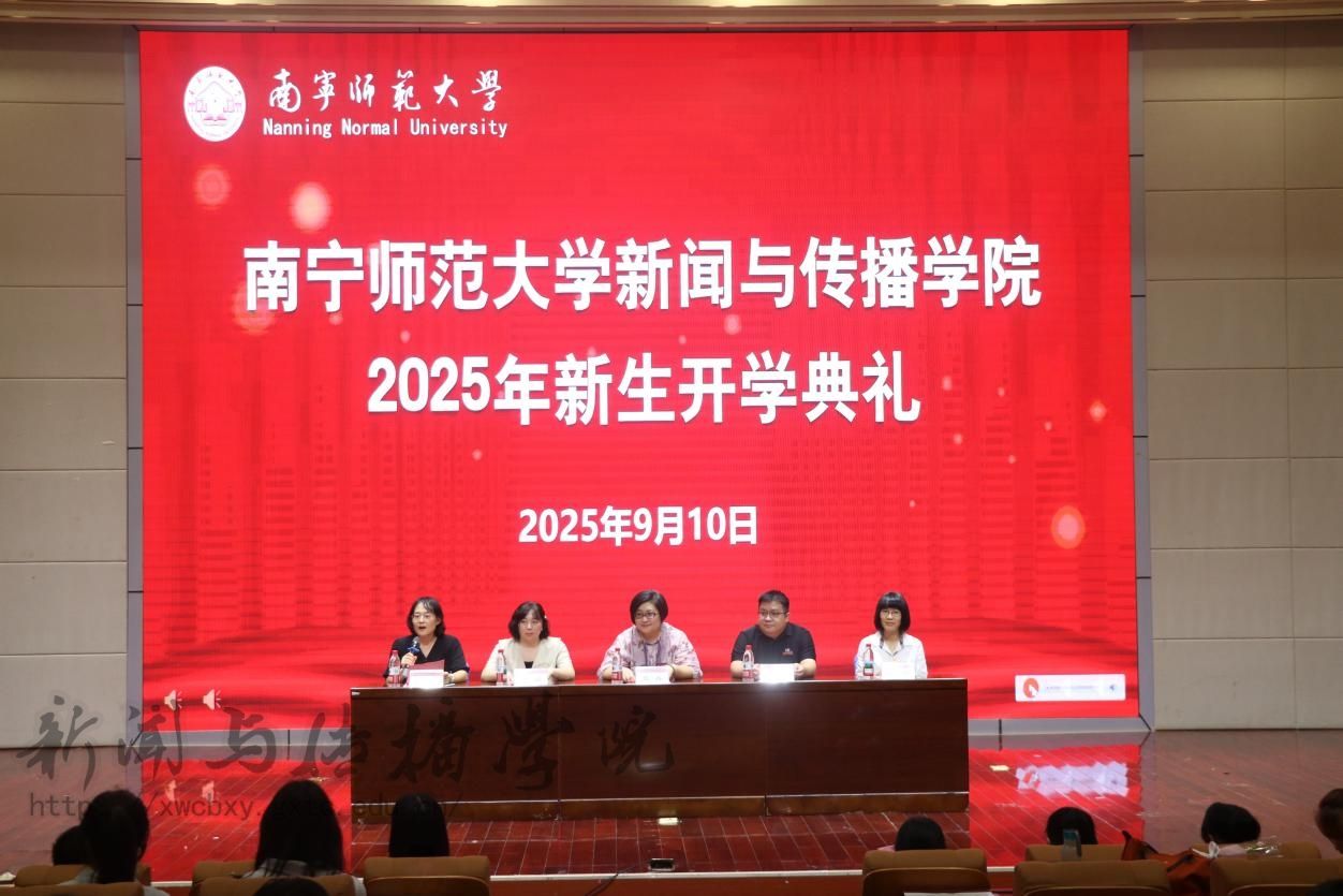 开学典礼在庄严的国歌声中拉开了帷幕。首先,梁颖涛经理以三个关键词“破界、扎根、共生”开启这场与2025级新生双向奔赴的成长对话,强调了新传学子应具有的活力与责任。他希望新传学子在精通技术的同时保持对真相的敬畏,坚守新闻人的温度与良知,深入实地记录广西的发展故事,做文化的摆渡人、时代的记录者、未来的定义者。