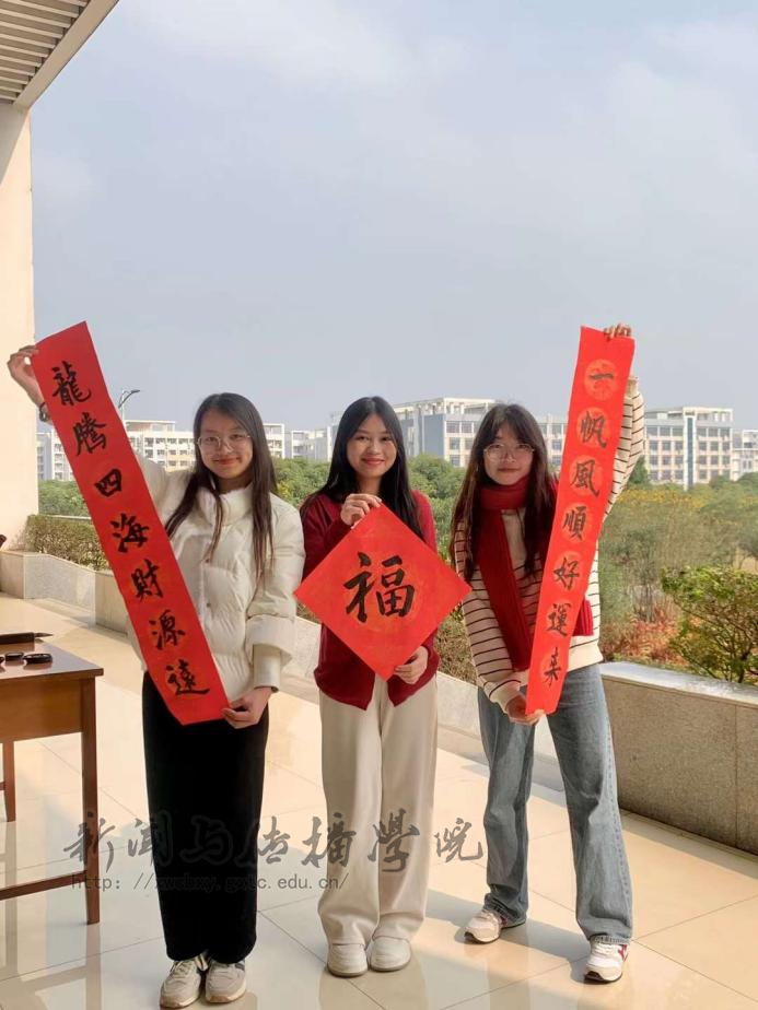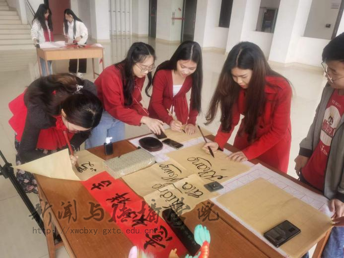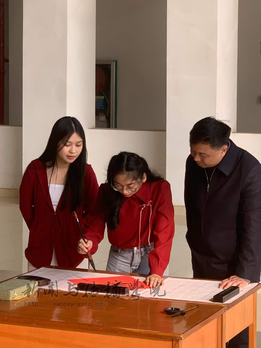 图1 陈洪波教授指导泰国职工冯春雨(中)写春联