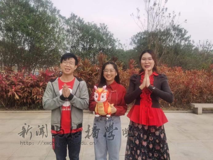 图6 老挝职工康麦(左)、宁宁(右),泰国职工冯春雨(中)一起拜年