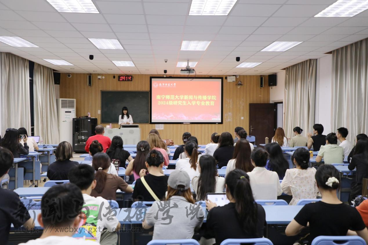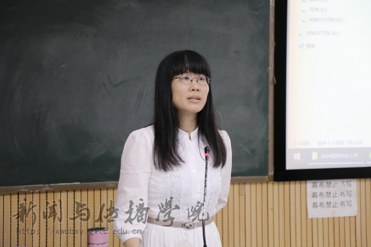 在会议期间,来自广西品牌与少数民族文化传播研究中心、广西“一带一路”对外传播与国际文明互鉴研究中心的微信公众号以及“党建+科研”党支部的相关负责人,向在场的2024级研究生介绍了科研学习平台的相关情况,并鼓励他们积极参与其中。