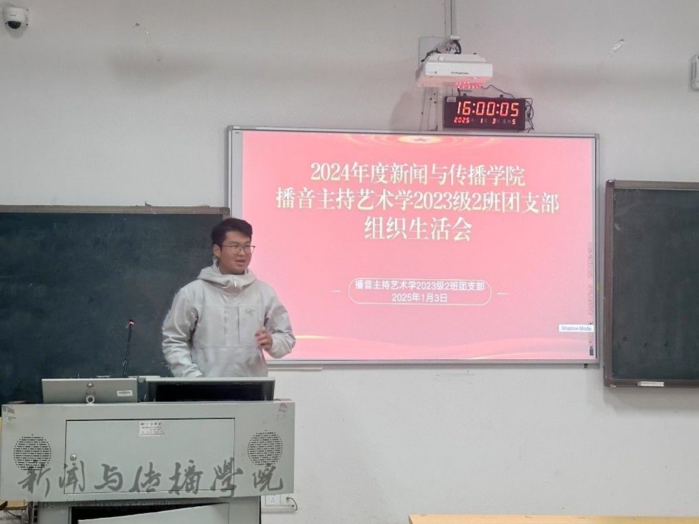 (播音与主持艺术学2023级2班团支部 团支书莫伟恒主持本班团支部会议)