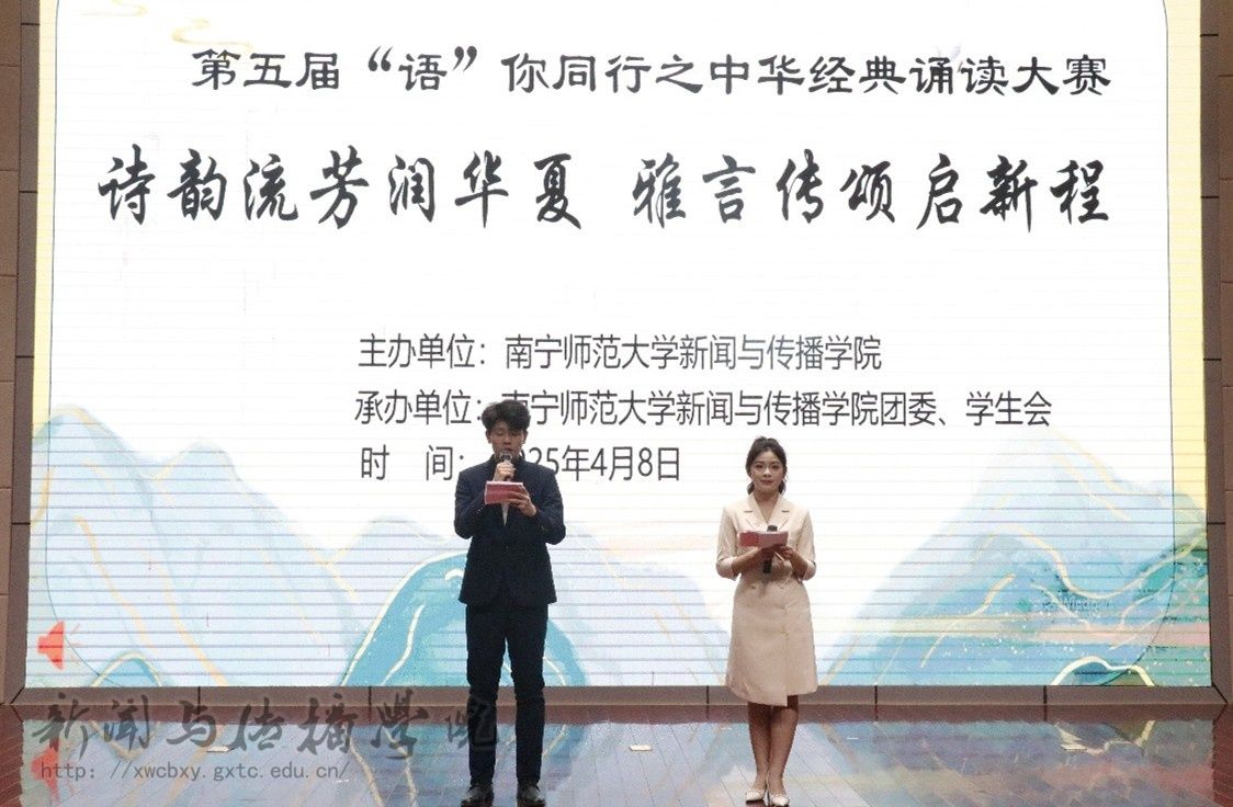 4月8日晚,公司在五合校区文综114报告厅举行第五届“语”你同行之“诗韵流芳润华夏,雅言传颂启新程”中华经典诵读比赛。本次比赛共有31组65位选手参与比赛,播音与主持艺术专业老师王雪瑶、李倩云、邓忠担任评委。