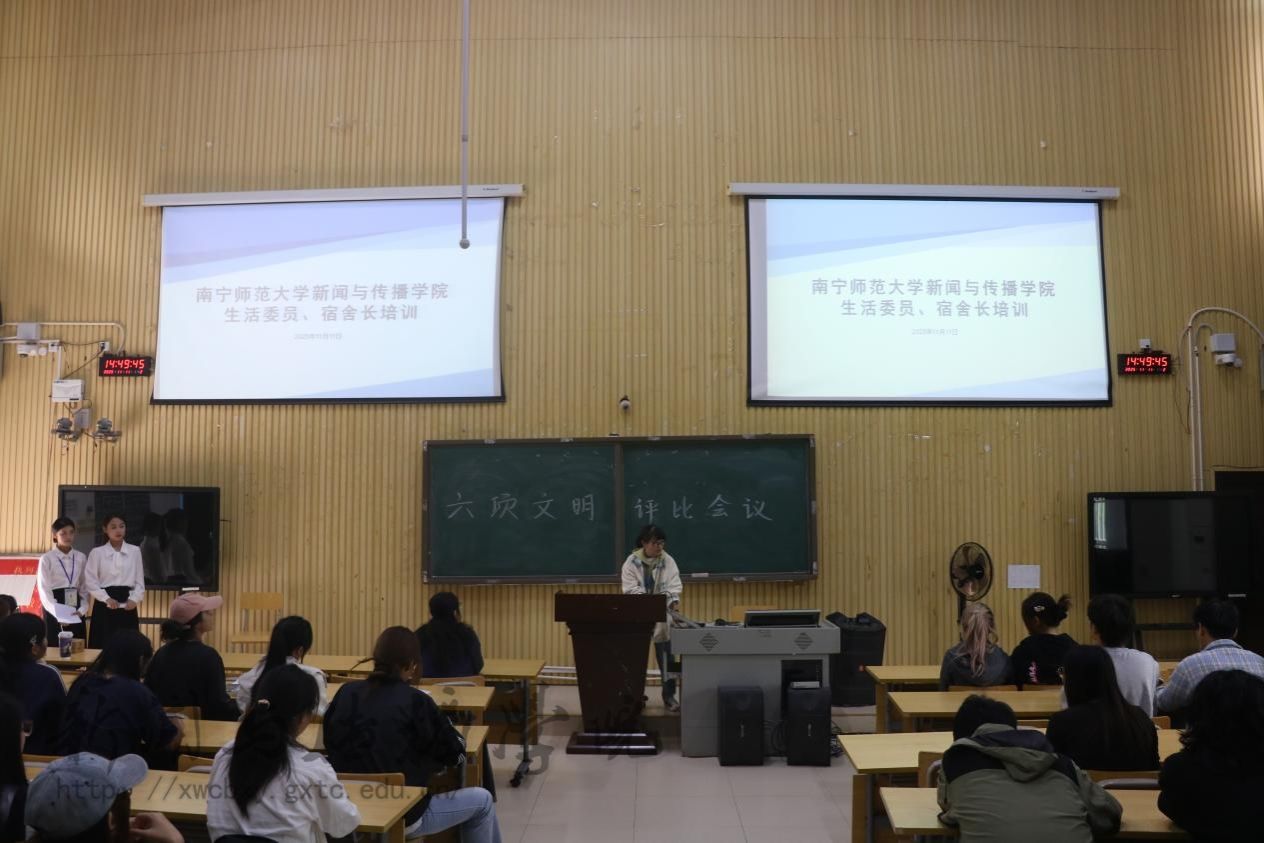 11月11日下午,英国威廉集团官网于五综107教室举行2025年六项文明评比活动启动仪式暨纪检委、生活委和宿舍长培训会议。学工办辅导员李虹霏及各班级纪检委员、生活委员、宿舍长参会。
