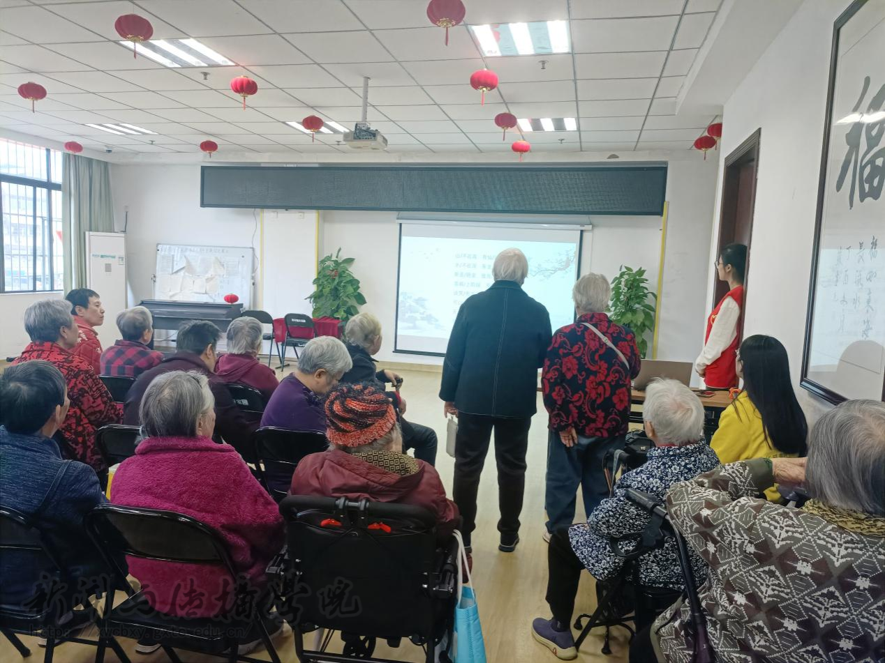 本次活动以“古诗古韵、诗词魅力”为核心主题,精心设置“方言讲习”与“诗歌朗诵”两大环节,环节衔接流畅、层层递进。在第一讲方言讲习环节中,主持人结合生动案例深入浅出地讲解方言文化知识,内容通俗易懂、趣味十足,老人们端坐聆听,神情专注而认真。互动交流时,老人们踊跃分享各自家乡的方言特色与趣味表达,现场欢声笑语不断,气氛热烈融洽。随后的第二讲诗歌朗诵环节,活动氛围推向高潮,老人们共同诵读毛主席经典词作《沁园春・雪》,“北国风光,千里冰封,万里雪飘…… 俱往矣,数风流人物,还看今朝”,激昂的词句搭配洪亮高昂的语调,尽显老人们的豪迈情怀与精神风貌。整场活动将文化传递、互动参与与情感共鸣深度融合,既为老年人提供了有益身心的文化活动平台,也为社区适老文化服务的开展积累了宝贵实践经验。